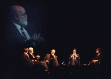 At the sumptuous sit-down dinner, Dr. Burda and his guests have an opportunity talk to and question three of the third culture superstars who were able to attend. It's not every night that you can question Richard Dawkins about his Darwinian view of culture, exemplified in his invention of the "meme," the unit of cultural inheritance, which though essentially idea, is operated on by natural selection; or talk to Daniel C. Dennett about his theories concerning the computational model of the mind; or learn from Steve Pinker how he has merged Chomskyan ideas about an innate language faculty with the Darwinian theory of adaptation and natural selection. All through dinner Burda, the ever-gracious host, is listening, and thinking. Learning and connecting. And at the table, in addition to the assorted Bavarian celebrities, are his database company guy, the head of his Internet group, and Maar, the director of his foundation. He never stops.