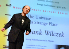 FRANK WILCZEK is considered one of the world's most eminent theoretical physicists. He is known, among other things, for the discovery of asymptotic freedom, the development of quantum chromodynamics, the invention of axions, and the discovery and exploitation of new forms of quantum statistics (anyons). When only 21 years old and a graduate student at Princeton University, in work with David Gross he defined the properties of color gluons, which hold atomic nuclei together. He received his B.S. degree from the University of Chicago and his Ph.D. from Princeton University. He taught at Princeton from 1974–81. During the period 1981–88, he was the Chancellor Robert Huttenback Professor of Physics at the University of California at Santa Barbara, and the first permanent member of the National Science Foundation's Institute for Theoretical Physics. In the fall of 2000, he moved from the Institute for Advanced Study, where he was the J.R. Oppenheimer Professor, to the Massachusetts Institute of Technology, where he is the Herman Feshbach Professor of Physics. Since 2002, he has been an Adjunct Professor in the Centro de Estudios Científicos of Valdivia, Chile.Much in demand for public lectures to a wide range of audiences, Frank has been anthologized in the Norton Anthology of Light Verse and twice in Best American Science Writing (2003, 2005). His television appearances include "ghostbusting" for Penn and Teller (2005). He has been a Sloan Foundation Fellow (1975-77) and a MacArthur Foundation Fellow (1982-87). He has received UNESCO's Dirac Medal, the American Physical Society's Sakurai Prize, the Michelson Prize from Case Western University, and the Lorentz Medal of the Netherlands Academy for his contributions to the development of theoretical physics. In 2004 he received the Nobel Prize in Physics, and in 2005 the King Faisal Prize. He is a member of the National Academy of Sciences, the Netherlands Academy of Sciences, and the American Academy of Arts and Sciences, and is a Trustee of the University of Chicago. He contributes regularly to Physics Today and to Nature, explaining topics at the frontiers of physics to wider scientific audiences. He received the Lilienfeld Prize of the American Physical Society for these activities. Two of his pieces have been anthologized in Best American Science Writing (2003, 2005). He is coauthor (with his wife, Betsy Devine) of Longing for the Harmonies, and author of Fantastic Realities, andLightness of Being: Mass, Ether, and the Unification of Forces. Beyond Edge: |
