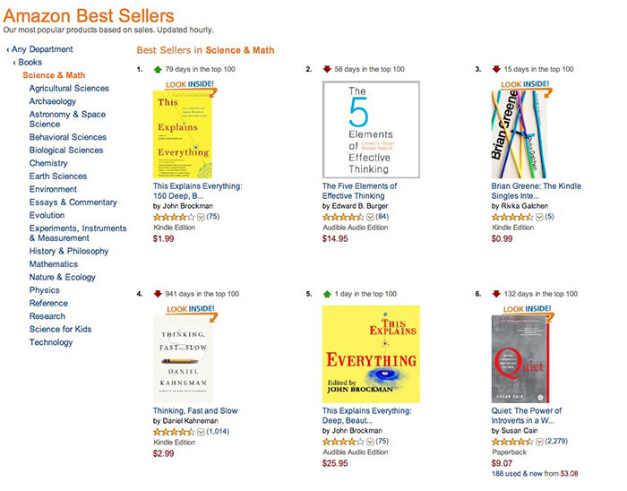 But I do want to emphasize one final thing. These researchers are giving us tools for thinking. It sounds utilitarian and it is. But tucked in the nooks and crannies of this book there are insights about the intimate world, about the realms of emotion and spirit. There are insights about what sort of creatures we are. Some of these are not all that uplifting. Gloria Origgi writes about Kakonomics, our preference for low-quality outcomes. But Roger Highfield, Jonathan Haidt, and others write about the "snuggle for existence": the fact that evolution is not only about competition, but profoundly about cooperation and even altruism. Haidt says wittily that we are the giraffes of altruism. There is something for the poetic side of your nature, as well as the prosaic.