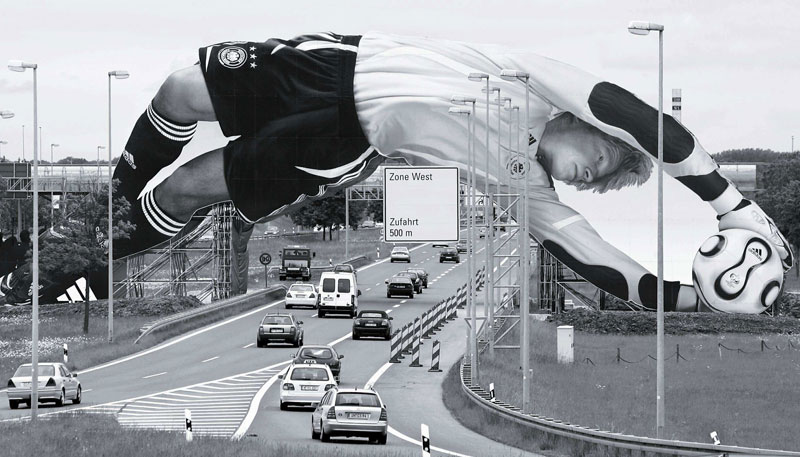 During the 2006 Football World Cup, the sportswear firm Adidas, which makes the German football squad's strip and is one of the main sponsors of the World Cup, showed portrait images of the football stars on its payroll, such as Michael Ballack, Oliver Kahn und David Beckham, on TV, in print and online media and on huge outdoor billboards. The estimated cost of 500 million euros to run this campaign shows how much influence prominent figures are deemed to have on the image and turnover of a brand nowadays.