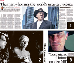Brockman, the rare individual who can comfortably call New York's avant-garde artists and Nobel Prize winners alike, has been a consultant to The White House and to the Pentagon. Every year, he hosts the "Edge Dinner'. among the Internet industry bigwigs who have attended what has become known as "The Billionaires' Dinner ' are Google Chairman Eric Schmidt, Amazon founder and CEO, Jeff Bezos, as well as Facebook's founder and CEO, Mark Zuckerberg,