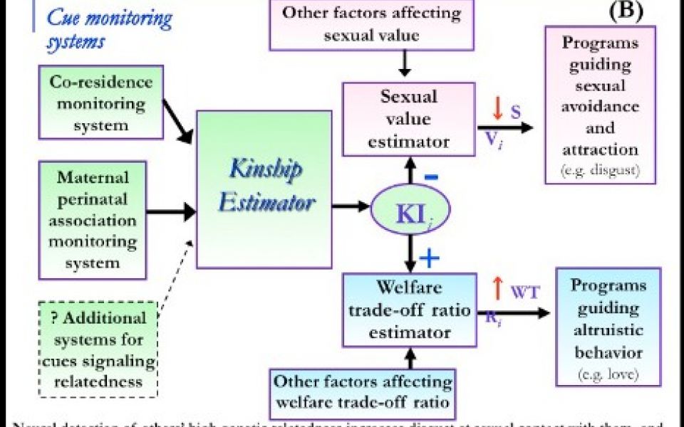 Mapping the undiscovered continents of the mind. In 1970 I developed an early version of map (A) in an attempt to communicate what I thought was being overlooked in the study of the human mind, and what a new evolutionary and computational approach might have to offer. One can crudely map proposed components of the human architecture according to how computationally simple or complex they are on one axis, and how functionally specialized or general-purpose they are on the other axis. The region at the lower edge (simple) corresponded to behaviorist and associationist models of human nature. The cognitive revolution introduced proposals for components that were more computationally complex, but these were widely assumed to be general-purpose. The region at the right edge (general-purpose) corresponded to the near-universally accepted blank slate models of human nature. These two areas (marked in blue) almost exhausted the scientific imagination of behavioral scientists at the time, and indeed until recently. Few were looking beyond these borders at the large unexplored white region. Yet, natural selection would have inevitably populated this area with functionally specialized components designed to solve important, recurrent adaptive problems: from coalitions to mating to bargaining to friendship to incest aversion. To solve these problems efficiently, the circuit architecture of these components would often need to be complexly specialized for the task. These programs or instincts are numerous, have built in content, generate the major outlines of the human social world, make cultures similar to each other, provide a new natural science foundation for social theories, and are eminently worth studying. Most important, their evolved information processing architectures can be mapped--something I have been working on with my wife Leda Cosmides, and our students and colleagues. For example, (B) is a map of the circuit logic of a neural system that evolved to detect genetic relatedness in familiar others, and use detected kinship to (i) increase disgust at the prospect of sexual contact; and (ii) to increase the weight placed on the relative's welfare. (C) is a map of some evolved computational elements of human alliance and coalition psychology.
